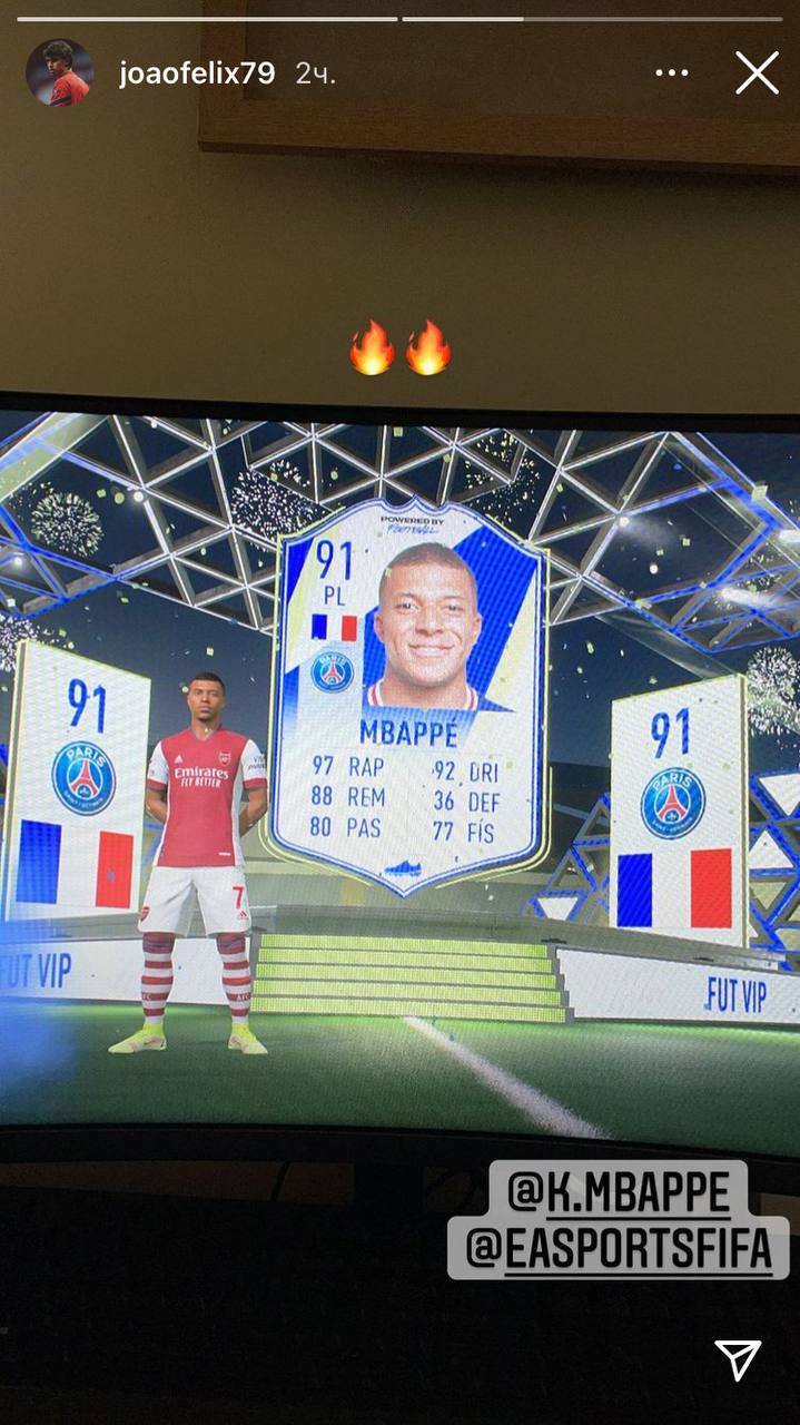 ​​Вот такую карту Килиана Мбаппе получил Жоау Феликс. Характеристики карты полностью совпадают с золотой версией Мбаппе. Возможно, это специальные наборы для амбассадоров EA Sports 🤷‍♂️