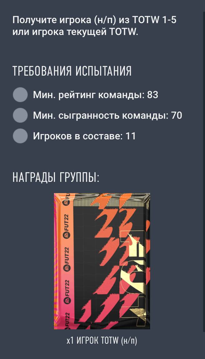 За выполнение можно получить игрока из команды недели с 1 по 5