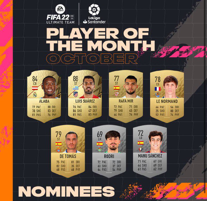 Объявлен официальный список номинатов на звание лучшего игрока октября в Ла Лиге