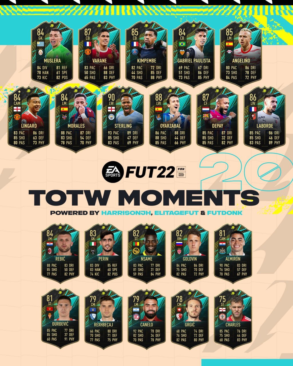 Из-за отсутствия матчей в топ-5 европейских чемпионатах и европейских сборных Команда недели 20 скорее всего получится очень слабой, поэтому прогноз очередной команды составлен на основе TOTW Moments 🤔