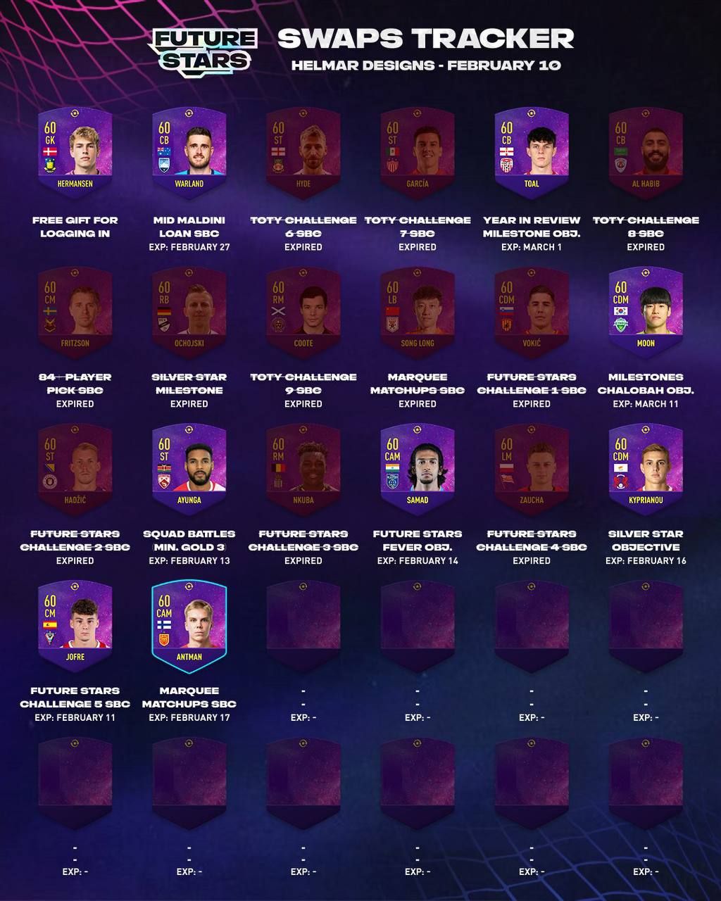 ​​Трекер жетонов обмена Future Stars.
