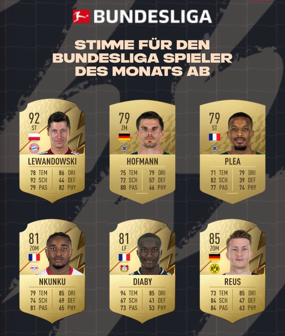 ​​Список номинантов на звание лучшего игрока месяца в Бундеслиге