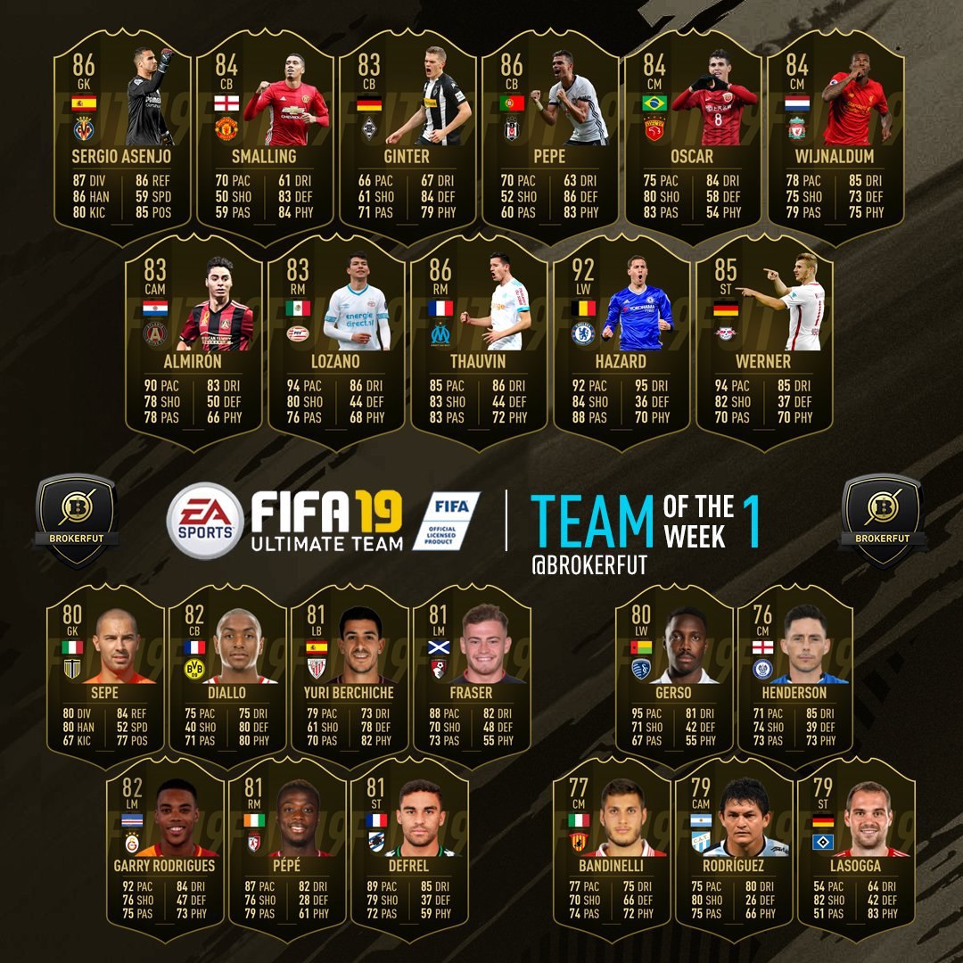 Предикшн первой команды недели FUT 19 от BrokerFUT, официальная команда появится уже в среду. #TeamOfTheWeek