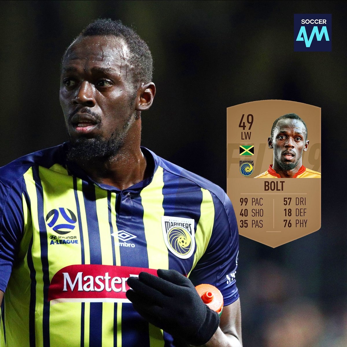 Вчера британская газета Mirror опубликовала статью о слитой в сеть карточке ямайского спринтера Усэйна Болта в FIFA 19. Общий рейтинг Болта составит 49, при этом показатель скорости игрока будет на отметке 99, что станет наивысшим показателем среди всех карточек игры.