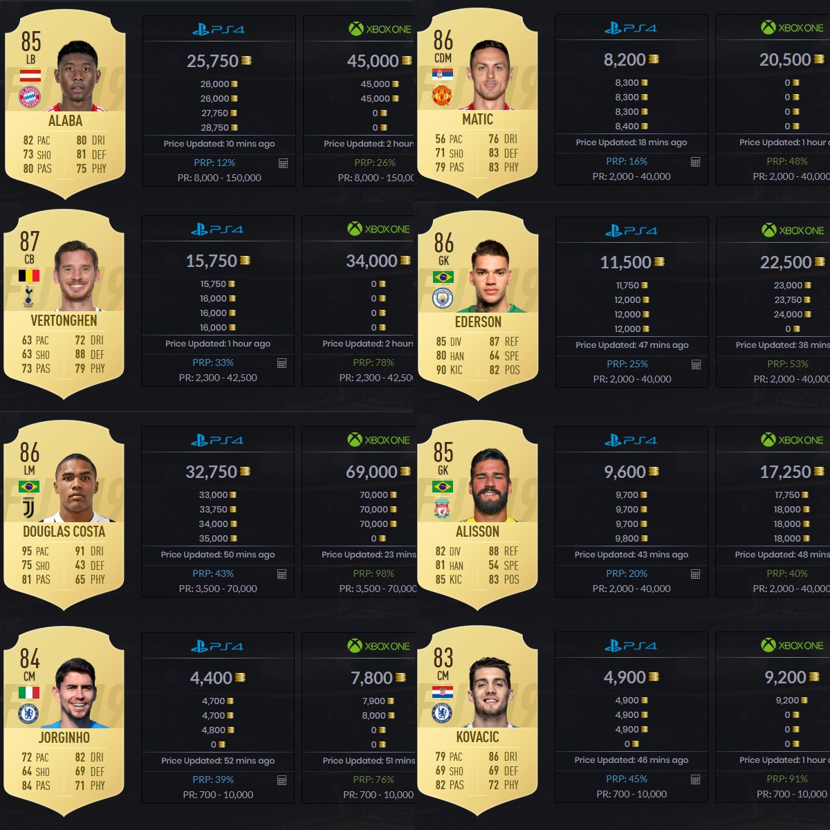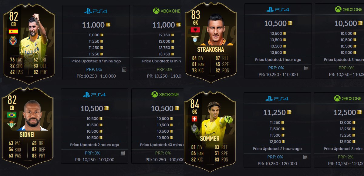 При выборе карточек для покупки обращайте внимание на разницу в цене на разных платформах. Дело в том, что на Xbox One игра уже доступна, спрос на игроков выше, а на рынке в разы больше монет, с выходом игры на PlayStation цены уравняются. Приводим примеры некоторых таких игроков