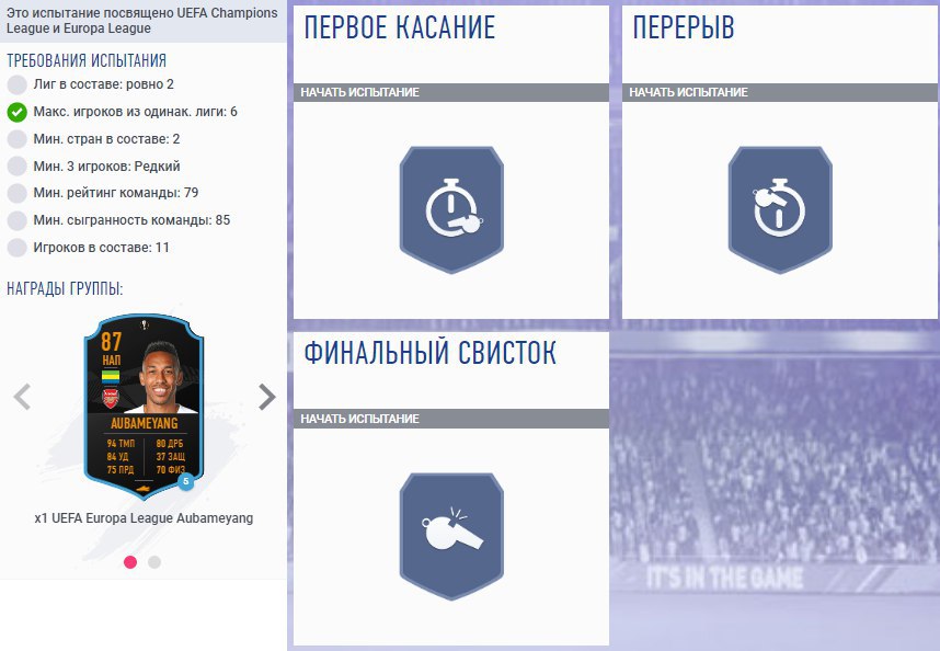 ​​В игре появилось первое СБЧ посвященное еврокубкам — «Турнир UEFA»! В награду карта Лиги Европы Обамеянга в аренду на 5 матчей и непродаваемый набор из двух игроков Лиги чемпионов! Также добавили группу СБЧ «Быстрый матч» с тремя сборками