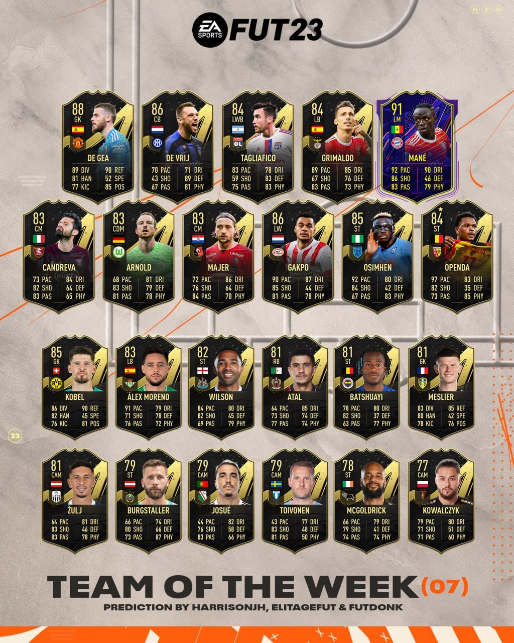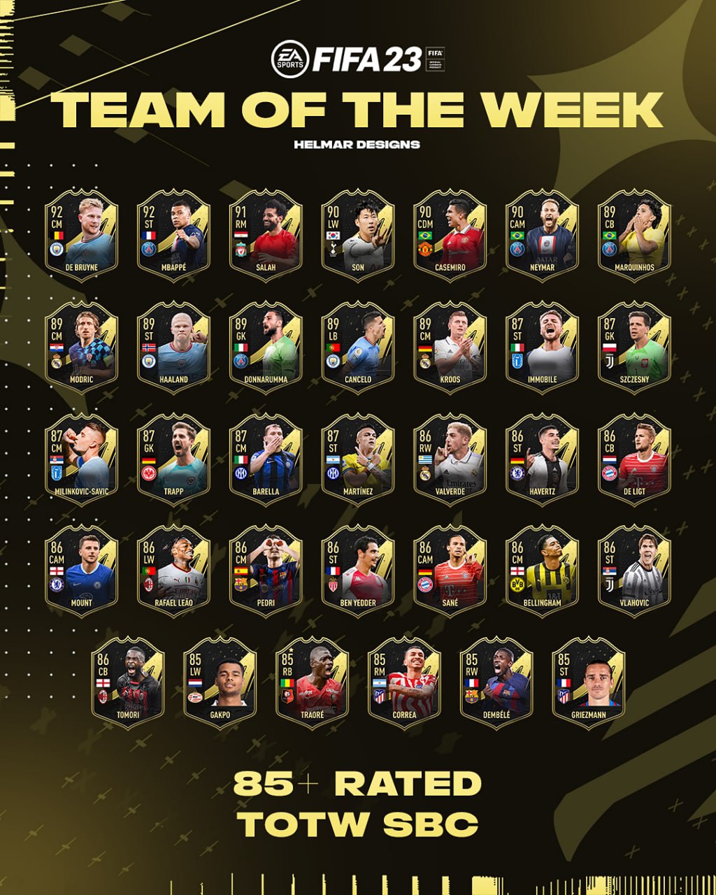 ​​Список всех карт игроков Команд недели с рейтингом 85+, которые можно получить за выполнение ИПК улучшения