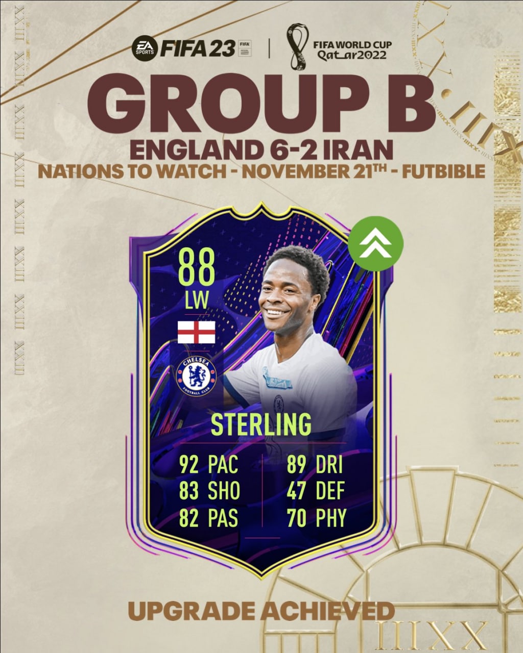 ​​Карта Рахима Стерлинга получит улучшение рейтинга за победу сборной Англии в матче ЧМ.