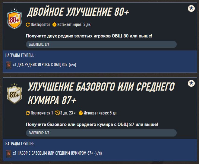 ​​Новые сборки в игре: Базовый или средний кумир 87+ и двойное улучшение 80+