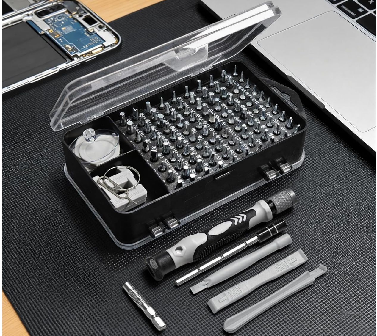 ✨ Precio tirado para este kit de destornilladores de precisión de grado profesional, con puntas de acero S2 endurecido, mango ergonómico antideslizante y bits intercambiables para tornillos Torx, Pentalobe, Triwing. Incluye organizador portátil