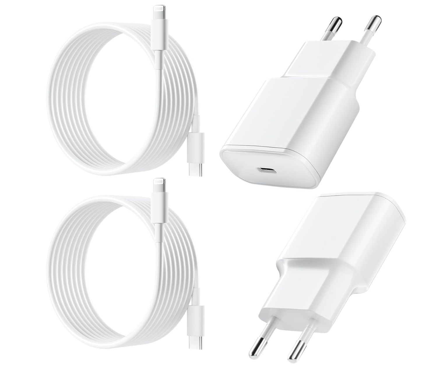 ✨ Incluyen 2 cables de carga para iPhone de tipo Lightning, pero el cargador se puede usar con cualquier tipo de móvil simplemente usando un cable USB-C de los normales de hoy en día