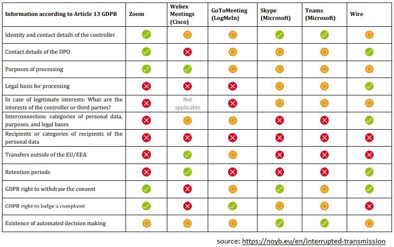 Сравнительная таблица по соответствию платформ для видеоконференций ст. 13 гдпр