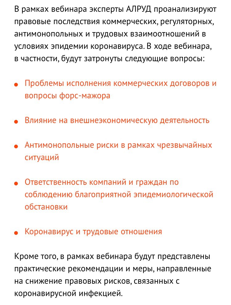 Тема: COVID-19. Legal. Q&A session с Еленой Себякиной.