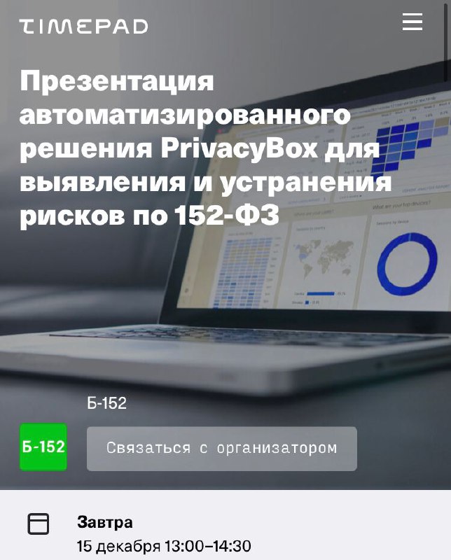RPPA PRO: Privacy • AI • Cybersecurity • IP pinned «#awards Когда: 25 декабря в 18:30 (мск) Где: в онлайн пространстве Тема: Russian Privacy Awards. Награждение победителей и подведение итогов года Организатор: RPPA, @DigitalRightsCenter, @roskomsvoboda Язык: русский Стоимость:…»