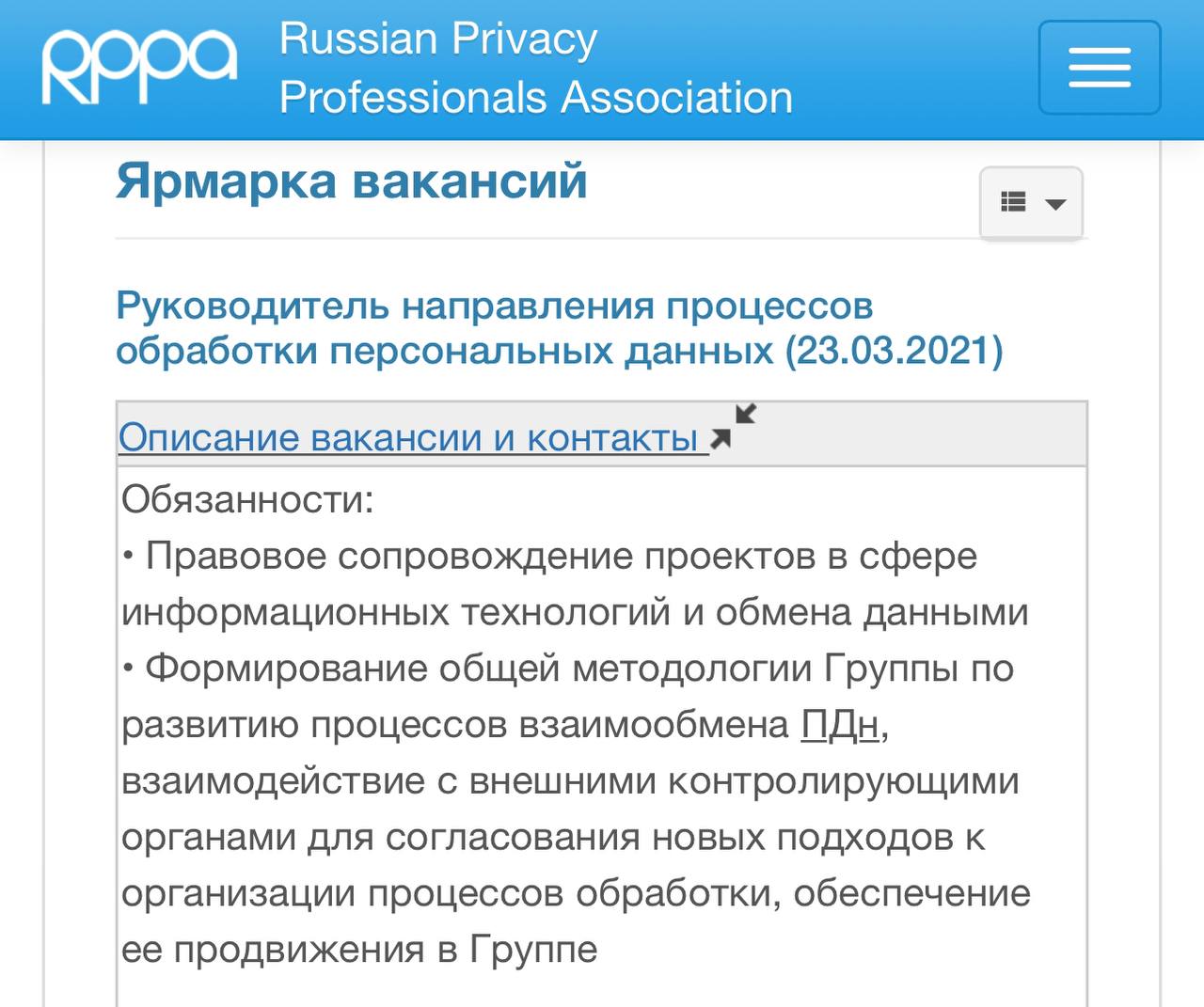 Лови вкусняшку - вакансия «Руководитель направления процессов обработки персональных данных» на rppa.ru