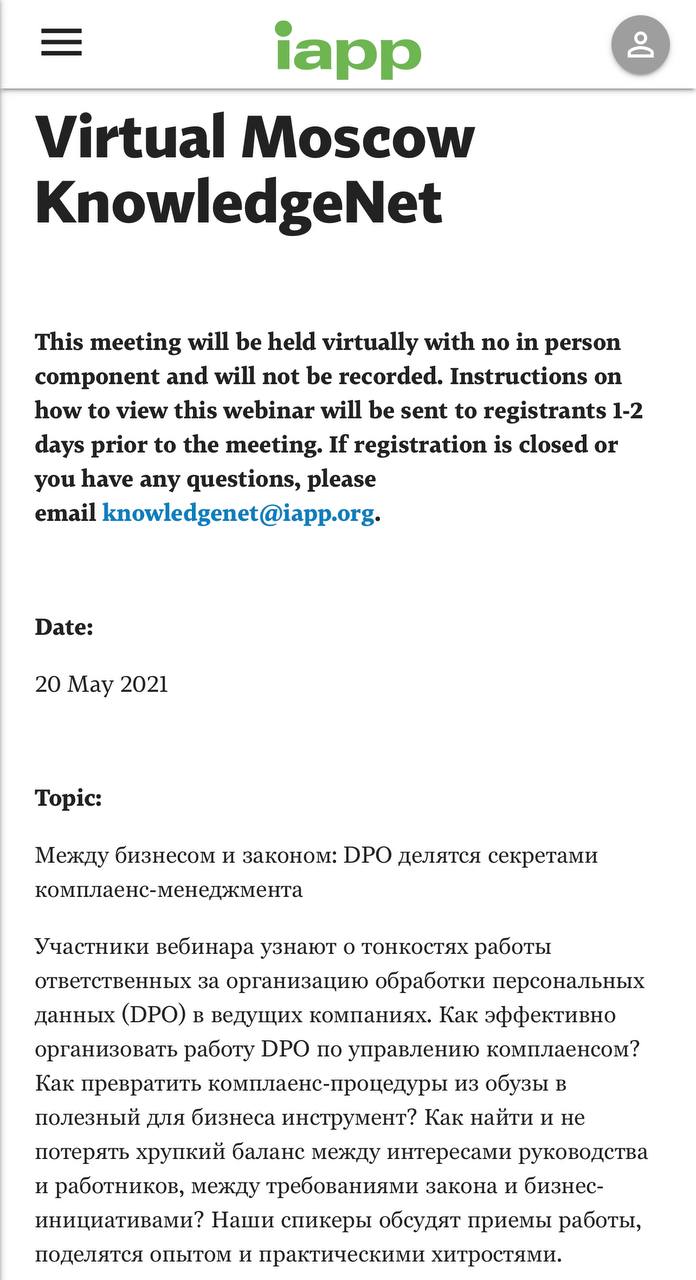 ➖Сергей Воронкевич CIPP/E, CIPT, CIPM, FIP. Тренер и ведущий консультант по GDPR.