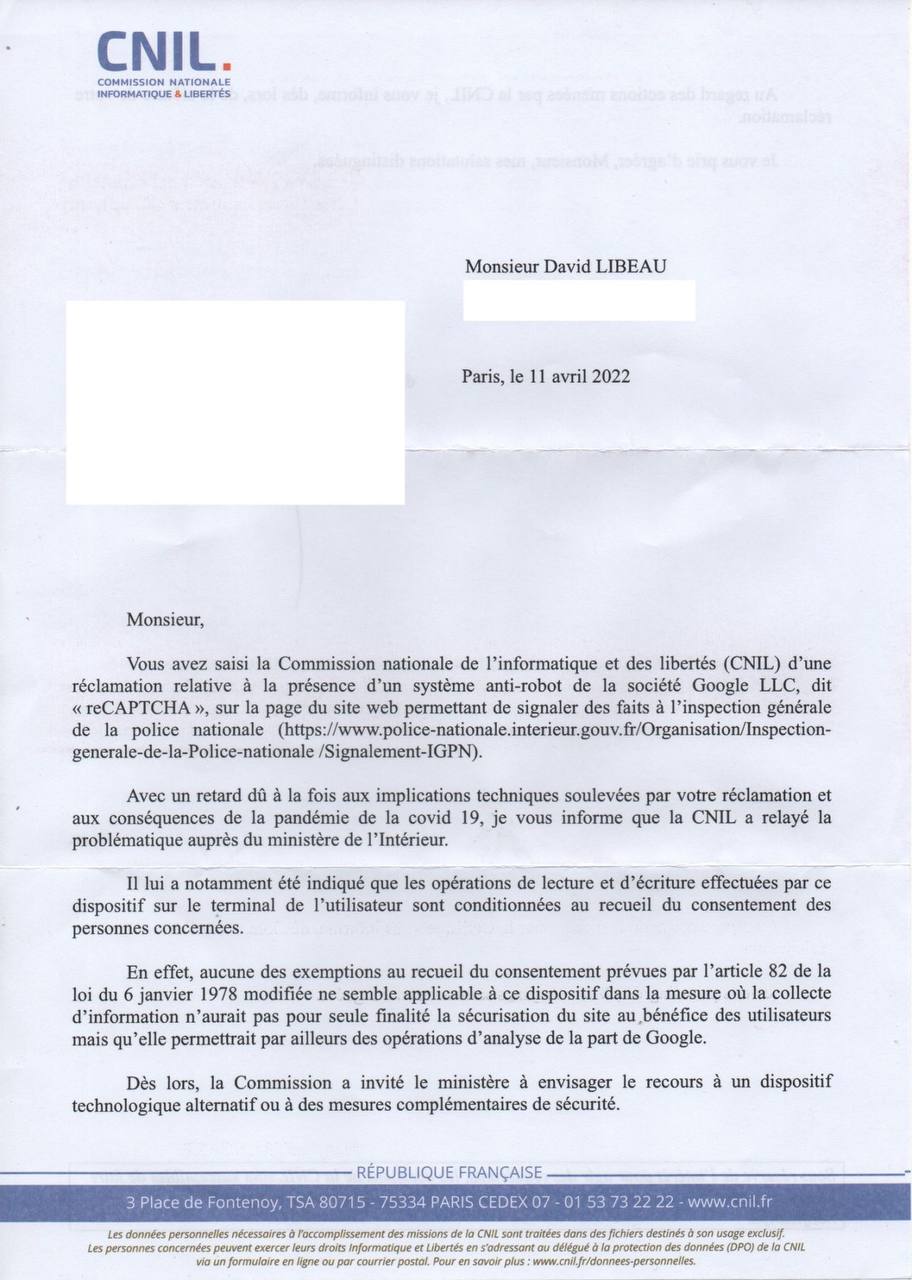 The CNIL has confirmed that the use of Google's "reCAPTCHA’s risk-based bot algorithms" must be subject to the data subject consent (e privacy Directive).