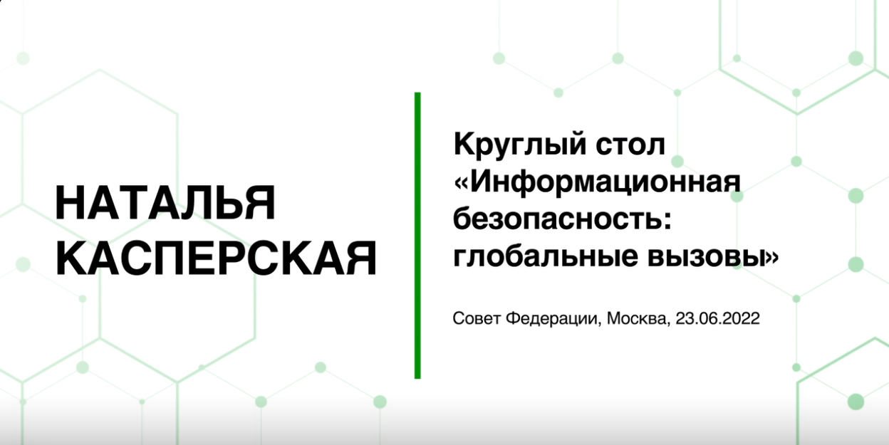 Наталья Касперская рассказала на круглом столе Комитета СовФеда РФ по конституционному законодательству и госстроительству о принципиально новых трендах и вызовах в сфере информационной безопасности.