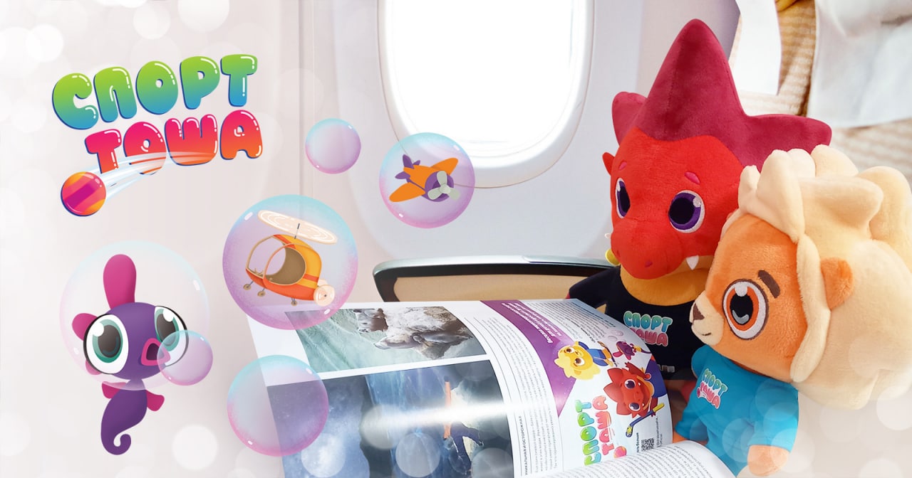 🏆 Сериал «Спорт Тоша» набирает высоту. Причём, как в прямом, так и в переносном смысле: помимо впечатляющего количества просмотров на разных площадках, герои мультсериала успели стать героями журнала на бортах самолётов.