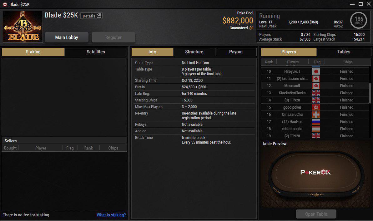 Как долго будет продолжаться хайроллерская вакханалия? Постоянный участник этих турниров mararthur1 написал в блоге, что "из-за некоторых грядущих изменений игра закончится для всех регов", но не пояснил, что имеет в виду. Возможно, он говорит про новую политику рейка в дорогих турнирах: несколько дней назад на PokerOk появились турниры с бай-инами $100,000 и рейком 10%, стандартным для недорогих турниров, но очень солидным для хайроллерской игры. Турниры по 25к сейчас проходят в формате $24,500+500, 2% рейка.