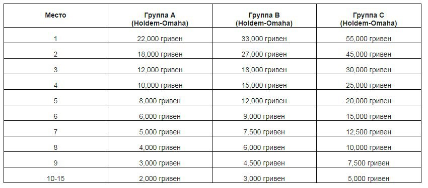 - от 2.5/5 до 5/10, призовой фонд 150,000 гривен;