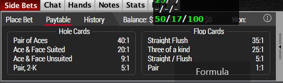 Новая попытка The Stars Group предложить покеристам игры из казино: после обновления клиента у некоторых игроков в привычном меню чата появилась вкладка Side Bets. Несмотря на название, рум предлагает не заключать пари между игроками, а делать ставки на возможные карты флопа.
