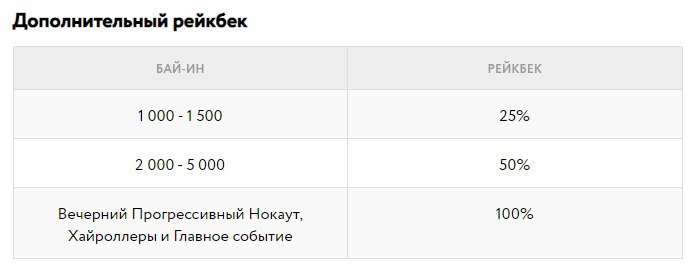 Победители главных турниров получат кубки, а за участие в турнирах дороже 1,000 рублей предусмотрен повышенный рейкбек. Если планируете участвовать — не забудьте получить бонус на депозит, который дает +20% рейкбека в течение недели.