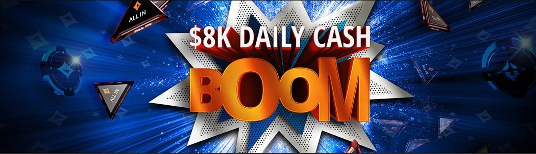Partypoker запускает Daily Cash Boom — два ежедневных фриролла с призовым фондом $5,000 и $3,000. Чтобы получить билеты в турниры, нужно зарегистрироваться во разделе “Акции” клиента и выполнить одно или два простых задания: