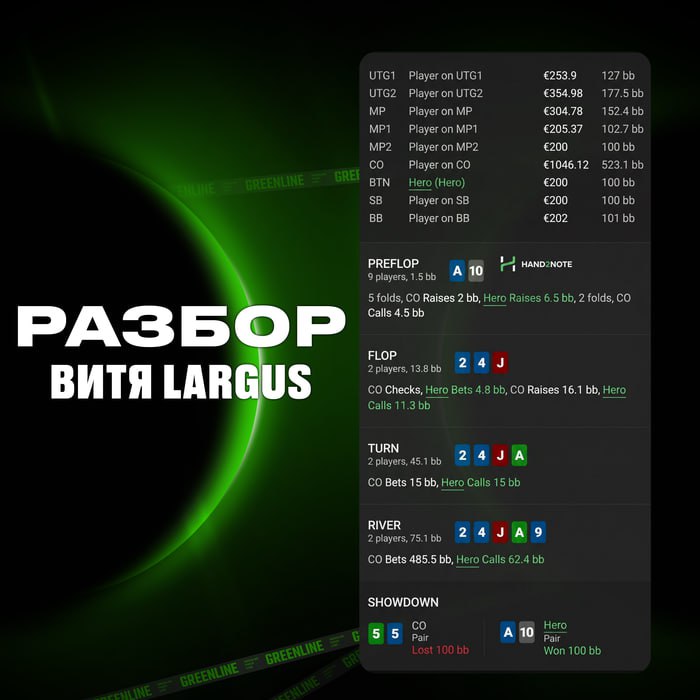 Тренер GreenLine Виктор Largus объяснил, почему решился блаффкетчить в 3бет-поте против регуляра — и какие блефы ожидал увидеть.