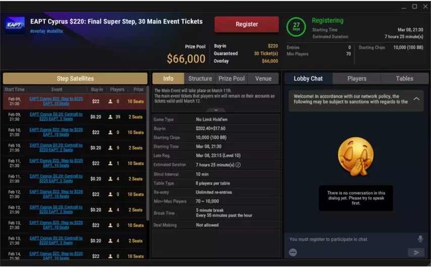 Пройти отбор еще не поздно в онлайне: финальный сателлит стартует на ПОКЕРОК 8 марта в 21:30 по Москве, а всю неделю будут идти недорогие степы от $0.2 до $22.