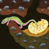 Gecky appears in a scene when Hoppy and Ratty explore the underground, although only appearing once, Gecky makes the reader excited about his image.