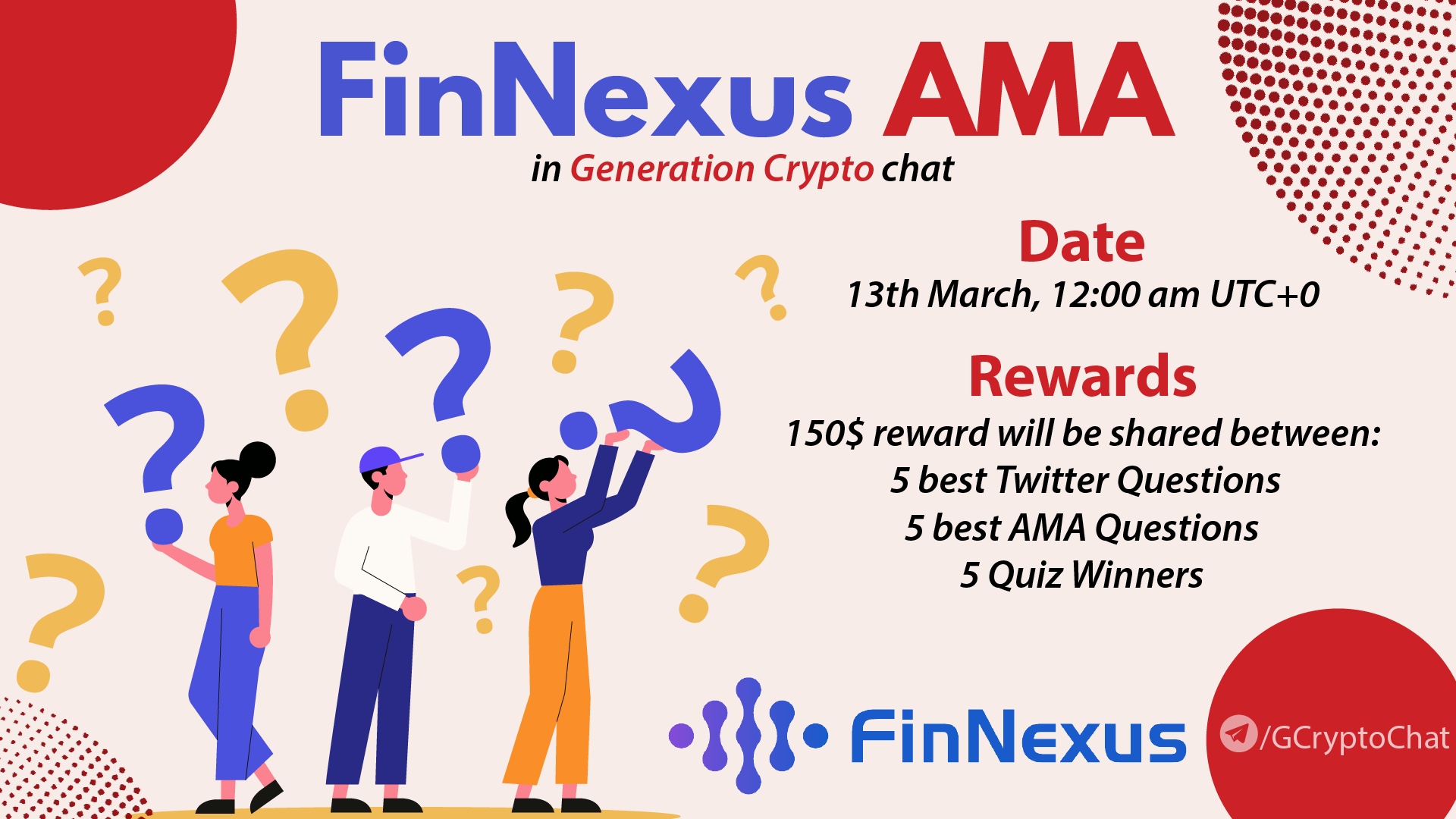 ❗️Dear community, Generation Crypto will host an AMA with FinNexus team on the 13th of March at 12:00 am UTC❗️