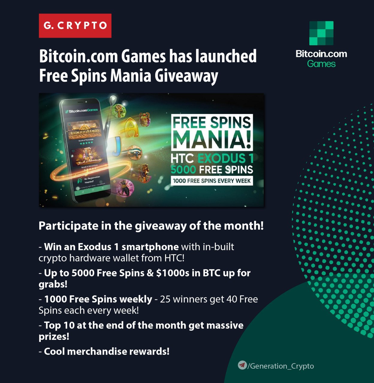 Bitcoin.com Games has launched Free Spins Mania Giveaway