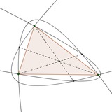 Через основания трёх чевиан, пересекающихся в одной точке, провели прямые, параллельные этим чевианам. Доказать, что три пунктирные прямые пересекаются в одной точке.