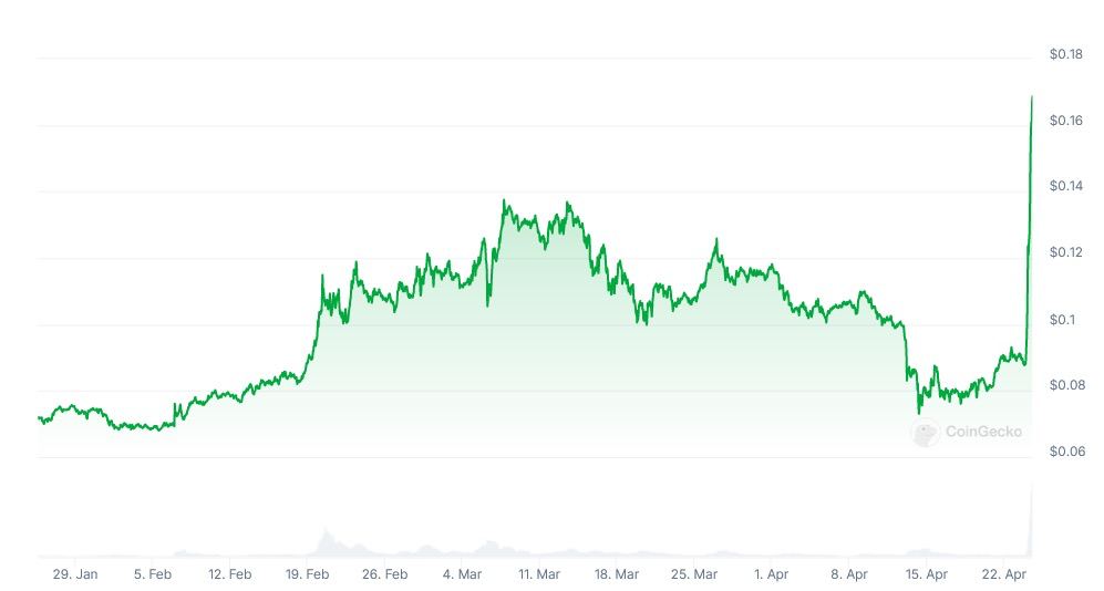 Токен HBAR вырос на 96%, достигнув двухлетнего максимума ($0,175)