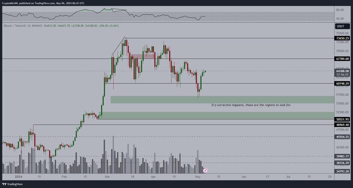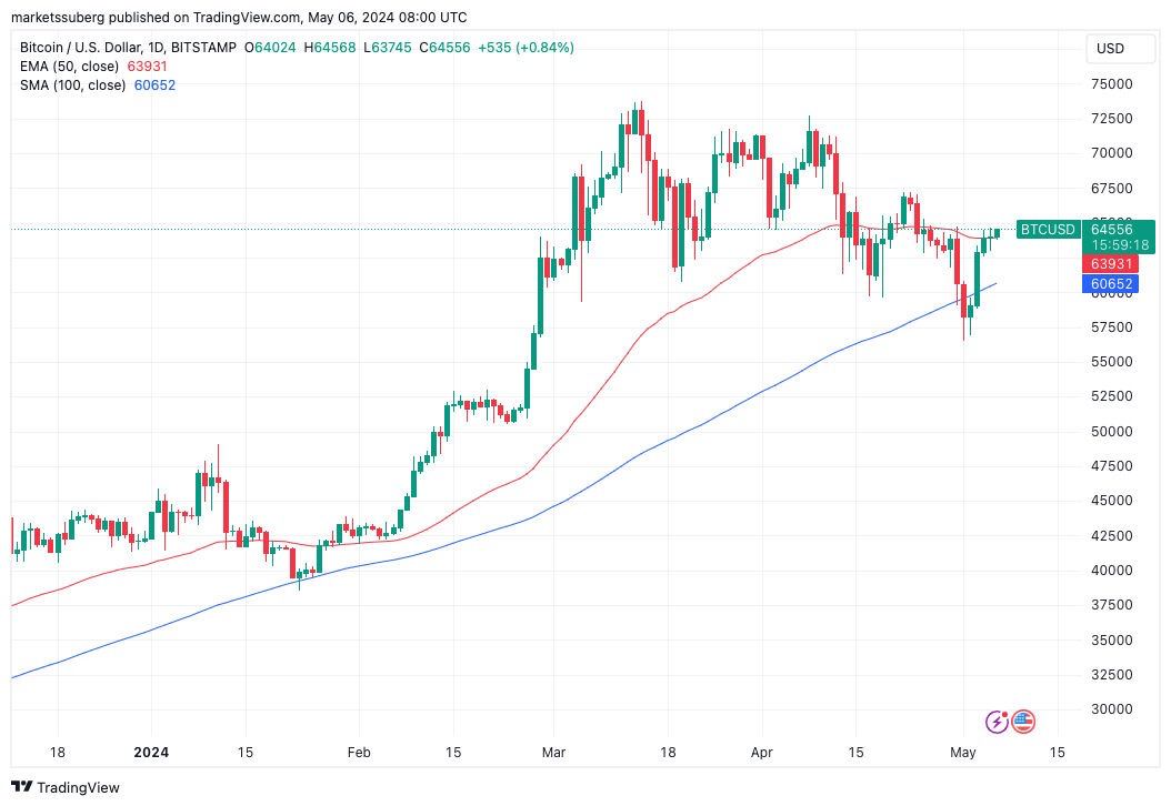 Примечательно, что 100-дневная скользящая средняя (SMA) и цена реализации (STH) колеблются в районе $60 650 долларов и $59 920 долларов соответственно.
