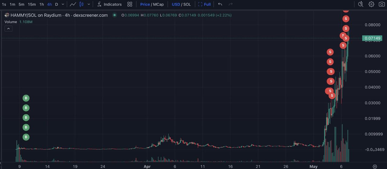 ◽️ Он потратил 60 SOL($8,673), чтобы купить $24,8 млн HAMMY по цене $0,00035 10 марта.