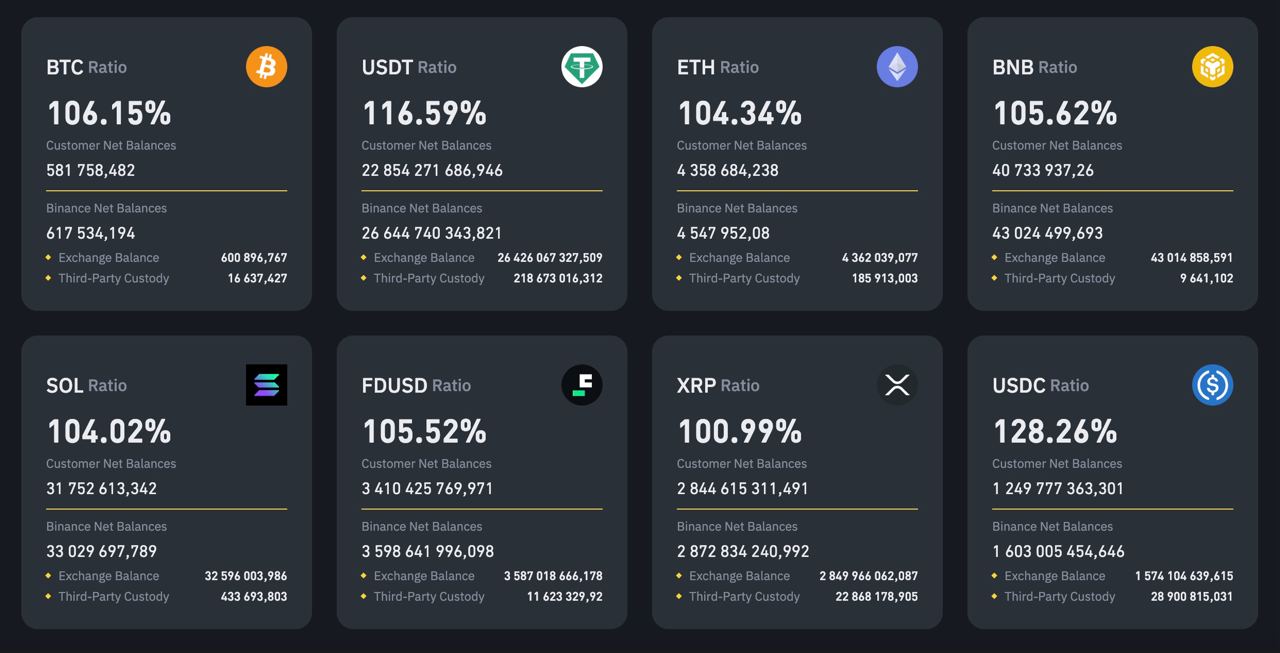 Binance опубликовали доказательство резервов (PoR)