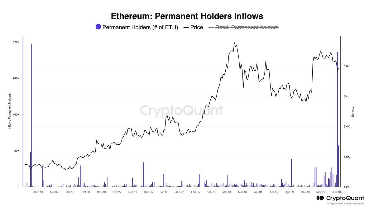 12 июня покупка постоянными держателями была второй по величине за всю историю наблюдений: 298 тыс ETH.