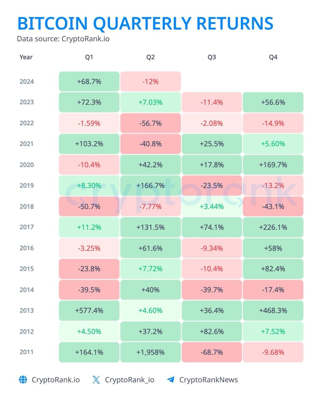 ⚡️ Аналитики американской криптобиржи Coinbase допустили, что в июле доходность крупнейших по капитализации криптовалют, BTC и ETH, возрастет, поскольку исторически в течение этого месяца активы демонстрировали наилучшие результаты в году.