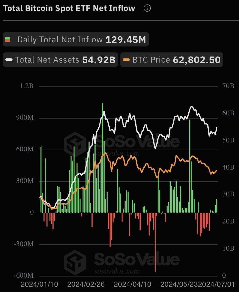 🔝 Ежедневный общий чистый приток: +$129,45 млн