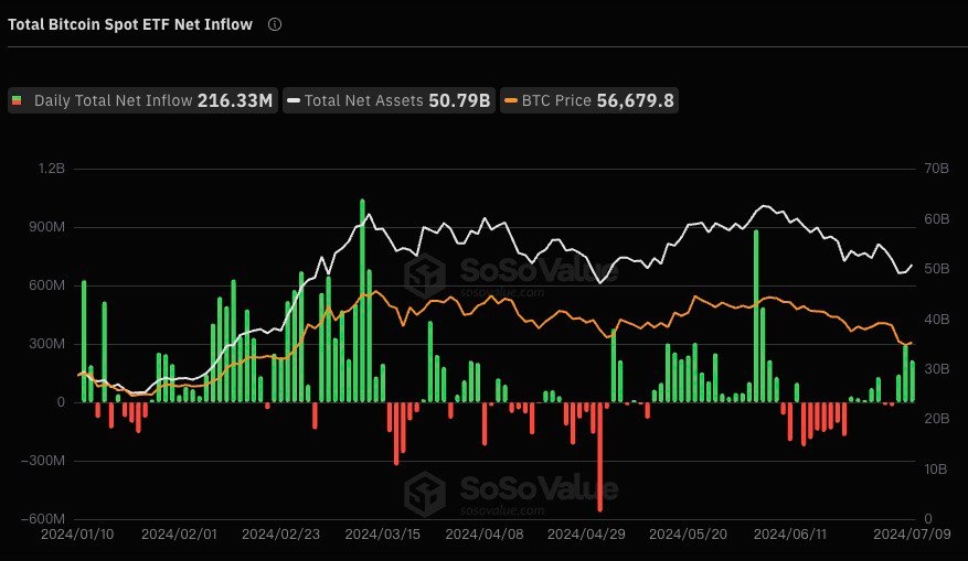 🔝 Ежедневный общий чистый приток: +$216,33 млн