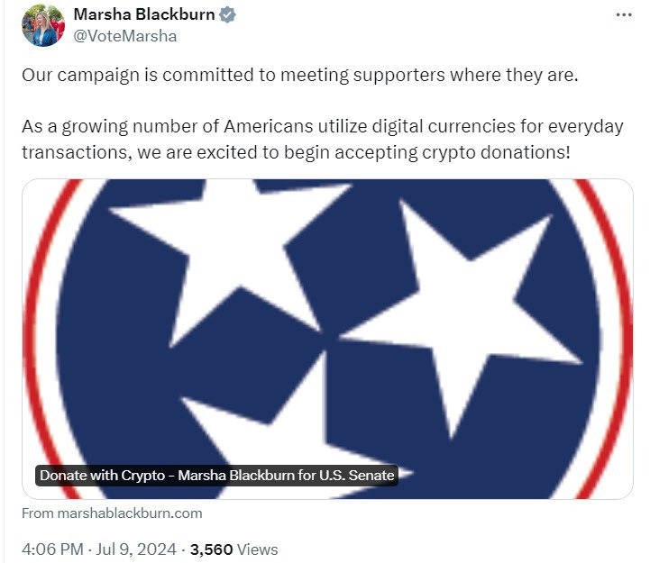 Наша кампания нацелена на то, чтобы все желающие могли принять участие. Поскольку всё больше американцев используют цифровые валюты для повседневных транзакций, мы рады начать принимать пожертвования в криптовалюте!