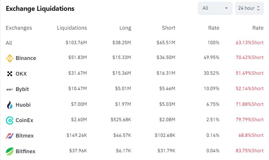 ℹ️ За 24 часа ликвидировано позиций на сумму $103,94 млн
