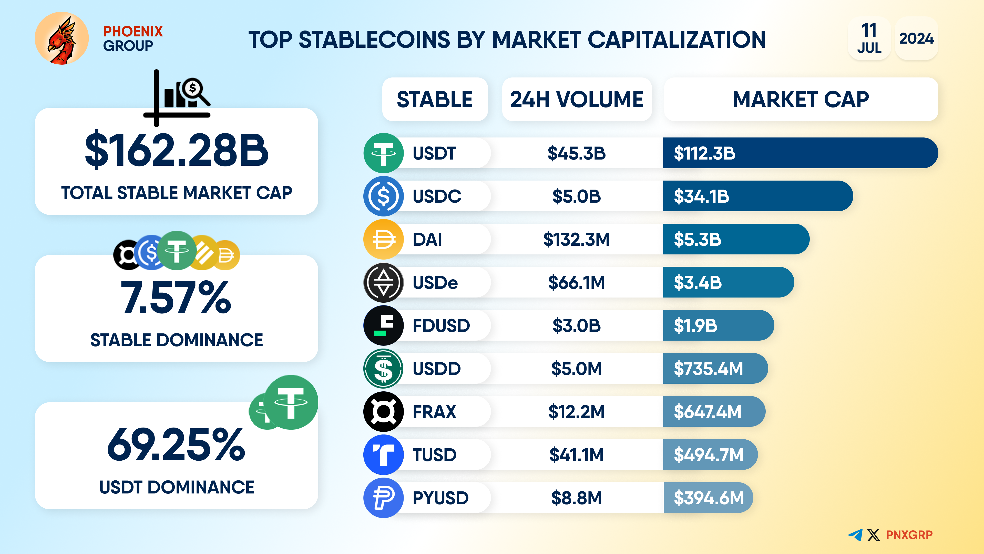 Общая рыночная капитализация стейблкоинов – $162,28 млрд