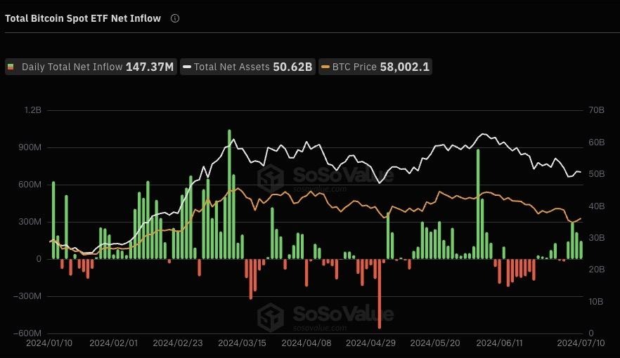 🔝 Ежедневный общий чистый приток: +$147,37 млн