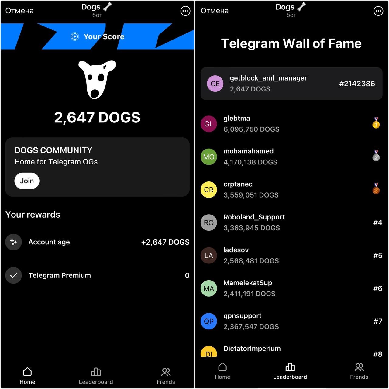 🔺 Получить токены DOGS можно за возраст вашего аккаунта Telegram: чем старше аккаунт, тем больше очков он получает.