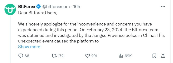 23 февраля 2024 года команду задержала полиция в провинции Цзянсу, Китай, поскольку около $56,5 млн было выведено с горячего кошелька BitForex 23 февраля. Вывод средств был остановлен на фоне полицейского расследования.
