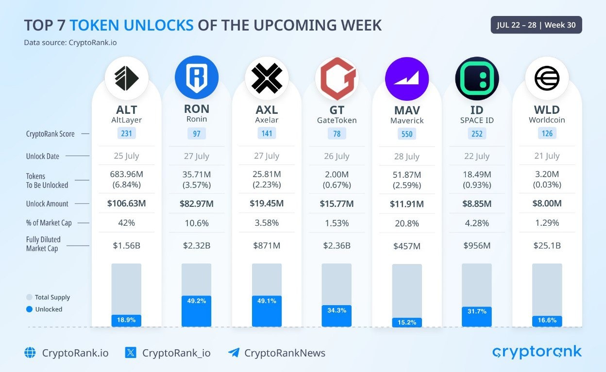 На этой неделе будут разблокированы токены на сумму около $488 млн.