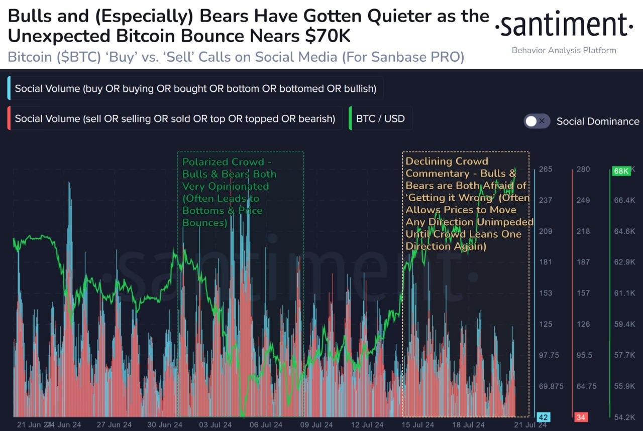 Толпа затихла после того, как биткоин и альткоины пережили несколько неожиданный отскок за последние 2 недели. Те, кто кричал о надвигающемся медвежьем рынке в начале июля, по сути, исчезли, поскольку BTC снова приблизился к $70 000.